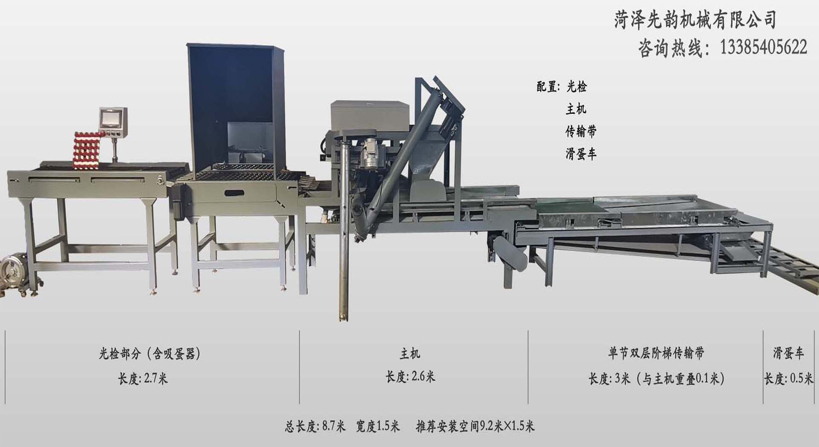 產(chǎn)品主要有皮蛋機(jī)/變蛋機(jī),是集禽蛋破損檢測、包泥、裹糠、入框于一體的全自動生產(chǎn)線
